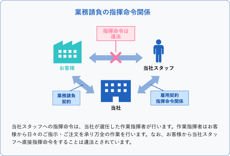 人材派遣契約を結ぶことができません。そのため、お客様に直接雇用していただく必要があります。( 農業、漁業を除く。)