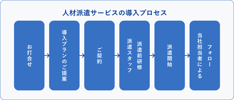 お客様と派遣スタッフに対して、担当者が付き、きめ細やかなフォローをいたします。